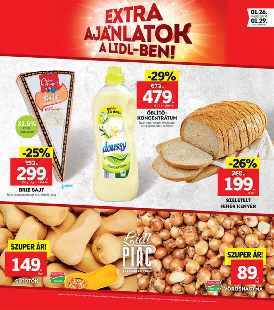 in akciós árajánlatok Lidl extra ajánlatok január 26-29. Hirdetés Lidl extra ajánlatok január 26-29. Share this: Share on facebook (Opens in new window) facebook MoreLike this:Like Loading... Szeretsz akciósan vásárolni? Akkor ne maradj le semmiről! Segítsd a munkánkat egy Lájkkal! Nyomj rá! Köszönjük! See more Előző cikk Lidl akciós újság január 26-tól Következő cikk Aldi akciós újság január 26-tól